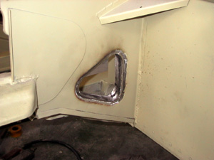 ![]() インナーフレームのフロアー側に三角形の穴が 開いていますがここの内側の溝を溶接補強することに よりかなりの強度アップが期待出来ます。 |