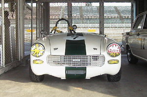 ![]() フードパネル及び左右フロントフェンダーをFRP製にして います。フェンダーの内側の余分な樹脂も出来る限り 削り落としています。これにより前後方向のロール軸は かなり後方に移動し、左右方向のロールセンターも下が ります。 |