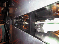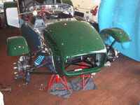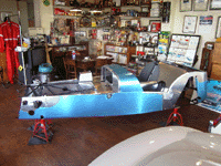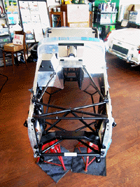 シャーシ設置 T シャーシ組み立ては意外にスペース が無くてもなんとかなる物です。 今回工場にスペースの開きが無く、 ショールームの中で始めちゃいました。 |