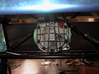 デフォレンシャル組み付け お腹の上にデフを置き ブリッジをしながら組みつけます。 最初にデフ上側のボルトを刈りドメし 下側の2本のボルトでセンター出しを すると楽に出来ますが,デフは以外に 重いので根性で頑張りましょう。 |
