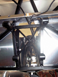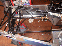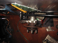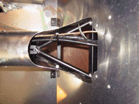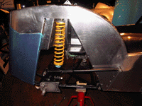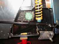 | リアサスペンションの組みつけ V ショックの前部のフレームに 三角のボックスがありますが 巻上げ式のシートベルトが入るスペースです。 |