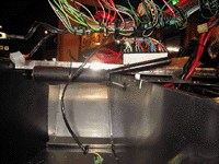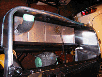 | フュ―エルホース組み付け U 上から見たところ アルミパネルの角が立っているので ハーネス,フュ―エルホース等 傷を絶対につけないように組み付けます。 |