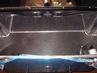 | フュ―エルタンク組み付け U タンクはトランクの上から入ります。 |