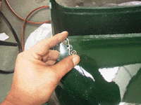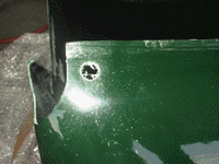 リアフェンダー組み付け T リアフェンダーの取り付け位置は フェンダー側に穴をあけておいて それに合わせる方が確実です ここでナッターと言う工具で ナットを埋め込みます。 |