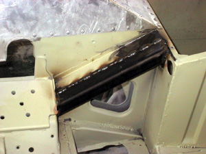 ![]() インナーフレームのフロアー側に三角形の穴が 開いていますがここの内側の溝を溶接補強することに よりかなりの強度アップが期待出来ます。 |