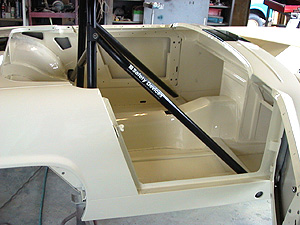 ![]() ロールゲージはフロアーに対して溶接で取り付けます。 このような簡単な形状でもオープンカーに対しては 相当に効くのでお薦めです。また、横方向のクラッシュ にも効果絶大です。 |