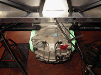フュ―エルホース組み付け ハーネスをトンネル内に通すと同時に フュ―エルパイプも通しておきます ドライブシャフトに干渉しない用に フレームとアルミパネルの隙間を 通します |